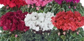 We are now growing the new ruffled Crispino Cyclamen. The Crispino stands out with their fringed petals and generous flowers. Very distictive and easy to grow!